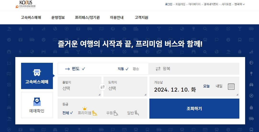 - 주말과 명절에는 고속버스 예매 경쟁이 치열하므로 미리 서두르세요.