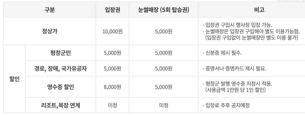 대관령눈꽃축제는 입장료 10,000원이지만, 눈썰매장은 5회 5,000원