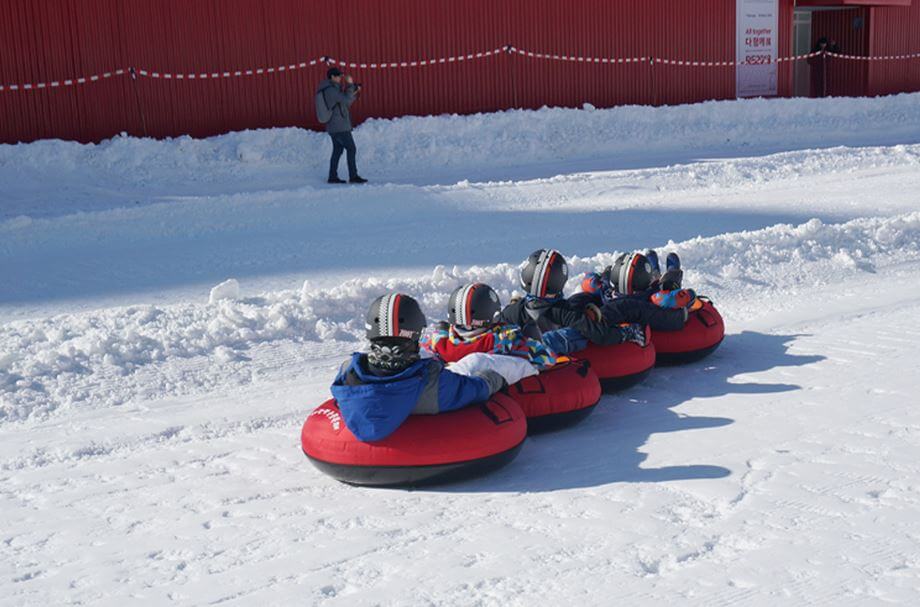 당연히 헬멧 착용은 필수겠죠? 썰매장 입장권을 내면 헬맷과 튜브를 대여해 줘요.