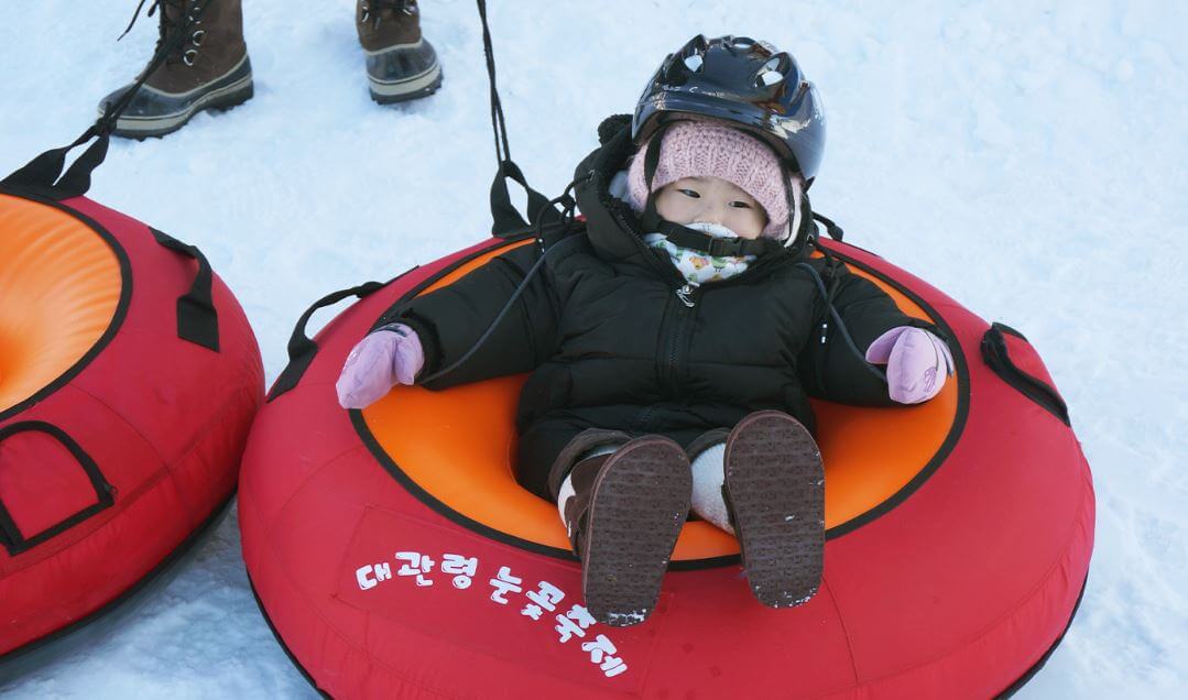 - 대관령눈꽃축제의 눈썰매장은 아이뿐 아니라 어른도 체험 가능하고요. 길이도 짧지 않아 재밌어요.