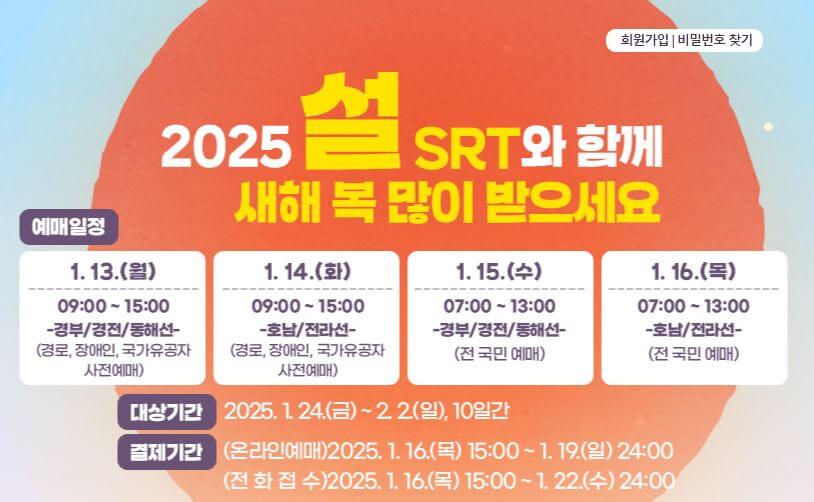 설연휴 SRT 예매는 빠른 준비가 필수입니다.