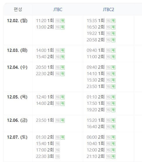 - 방송 시간 : 매주 토요일, 일요일 오후 10시 30분