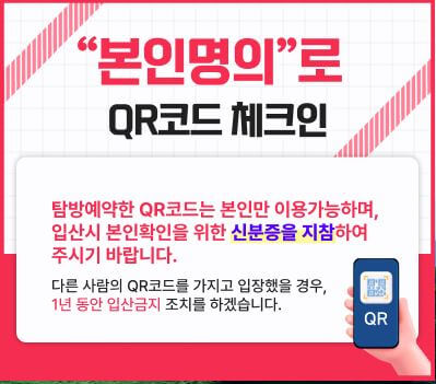 - 예약 확인 문자 및 신분증 : 입산 시 확인