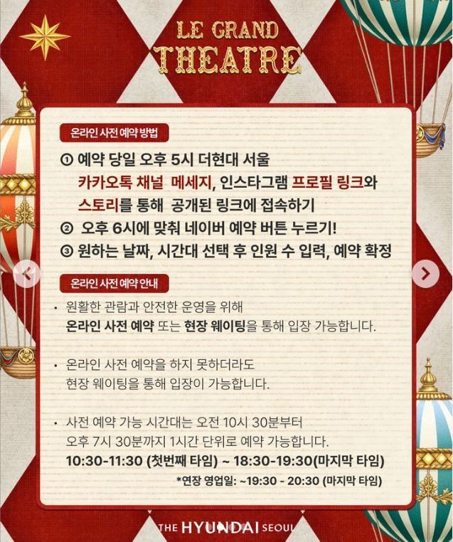 - 예약 링크 열기: 더현대 서울의 카카오톡 플러스 친구 또는 인스타그램 프로필 링크를 통해 예약 페이지로 이동합니다.