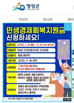 - 지급 방식: 지역화폐 또는 선불카드 형태로 지급 예정