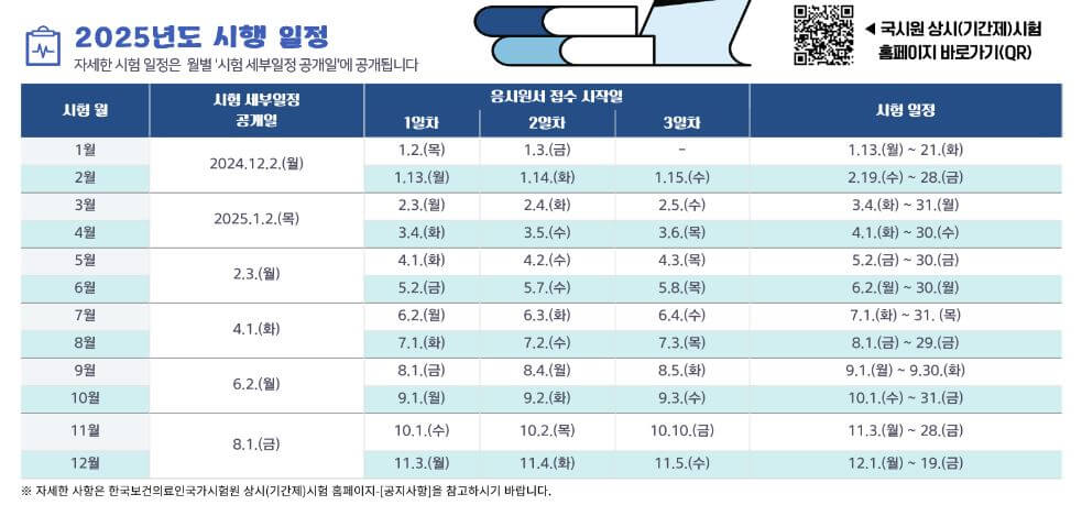 자세한 일정은 한국보건의료인국가시험원에서 확인하시기 바랍니다.
