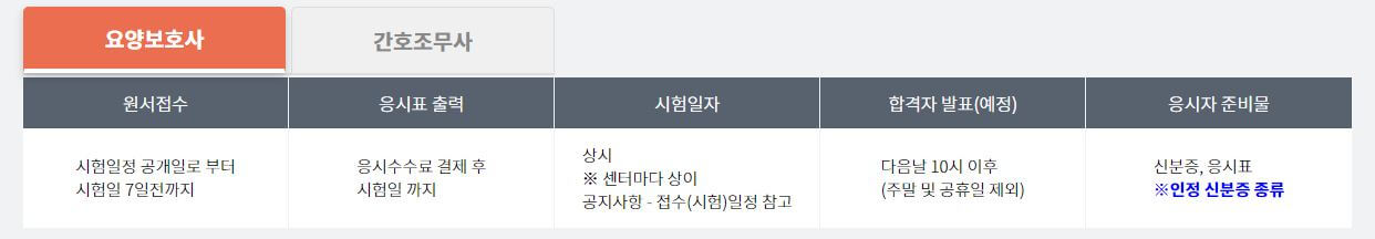 | 필기시험 | 요양보호와 인권, 노화와 건강증진, 생활지원 및 상황별 요양보호기술 | 35문제 | 10:00 ~ 11:30 (90분) |