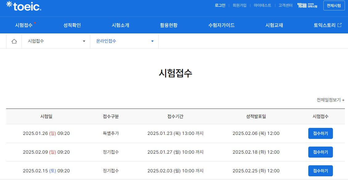 토익시험 접수는 YBM 한국TOEIC위원회 공식 홈페이지에서 간단히 할 수 있습니다.