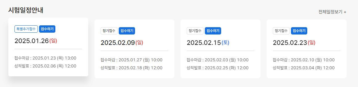특히 시험일정을 미리 확인하고, 여유 있게 접수하는 것이 좋은 점수를 얻는 첫걸음입니다.
